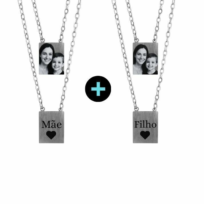 Modelo: Escapulário com duas plaquinhas para gravação de duas fotos frente e duas escritas verso + Escapulário com duas plaquinhas para gravação de duas fotos frente e duas escritas verso. Compre um e leve o outro para o seu filho(a).
